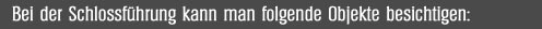 Ausser die Hauptschlossführung ist möglich die Exposition des Bezirksmuseums zu sehen ( selbständiger Eintritt ) – die Barockbilder, die tetschene Veduten, die Schlossrüstkammer, die einige Waffe und Exponate vor der Verwüstung gerettet wurden, sie ist mit den ursprünglichen Fresken und der Holzzimmerdecke geschmückt